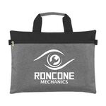 Spacious briefcase mode of 300D Oxford polyester in elegant combination of heather grey and black. With reinforced handle, inner lining and zipper.