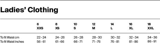 | XS | S | M | L | XL | 2XL | |