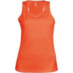 Quick drying light weight fabric. Racer back style. Self fabric bound neck and armholes. Twin needle finishing.