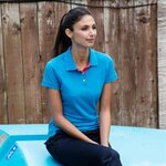 Women's slim fitting tailored fit polo shirt. slim fit, shaped at waist. Ladies 65/35 Pique Polo Shirt with contrast under collar and inner placket.
